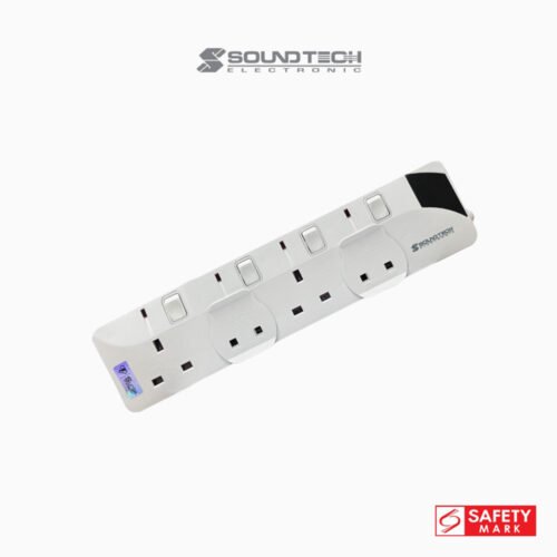 SOUNDTECH – 4Ways Extension Socket 6Metres with Surge Protection. Black | White