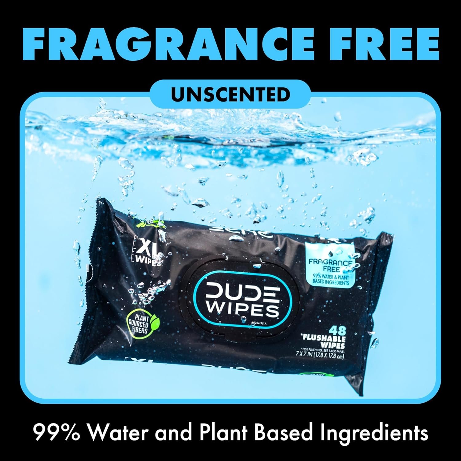 - FLUSHABLE & 100% PLANT SOURCED FIBERS: Our flushable wipes for adults are made plant sourced fibers. Unlike baby wipes, DUDE Wipes are sewer and septic-safe and begin to break down when flushed