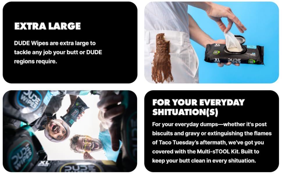 - WET BEATS DRY: We promise once you try DUDE Wipes you’ll never go back. Designed for a clean, more refreshing feeling than toilet paper, our plush wet wipes come in sleek wipe dispenser packs that fit perfectly on your throne