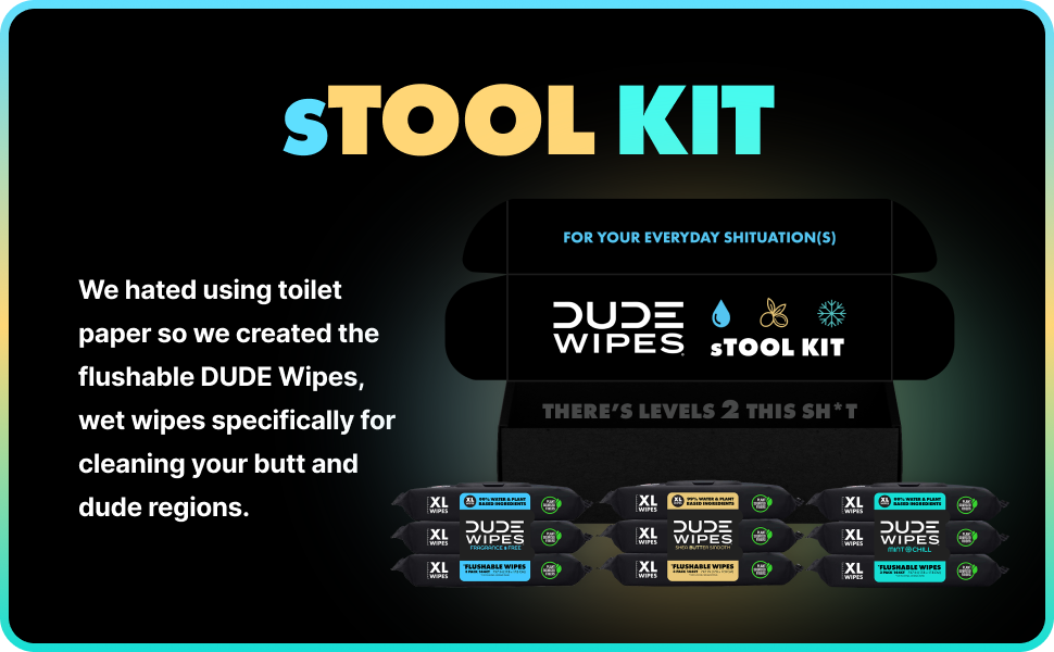 - THE ULTIMATE GIFT: Dude Wipes sTOOL Kit makes the perfect gift for men (or women) in your life. Give the gift of flushable wet wipes for adults in Mint Chill, Shea Butter, and Fragrance-Free