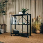 But this shelf isn’t just a symbol of order—it’s the epitome of adaptability. Its collapsible nature allows instant storage. giving you more room to breathe. Coupled with its pivotal wheels. relocating it is a breeze. Sculpted from staunch carbon steel. it promises durability. Its polished design adds a dash of finesse. whilst a mobile lock guarantees unwavering stability.