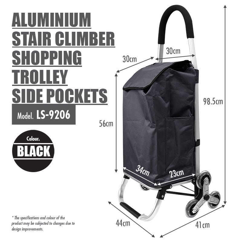 Aluminium Stair Climber Shopping Trolley with Front and Side Pockets