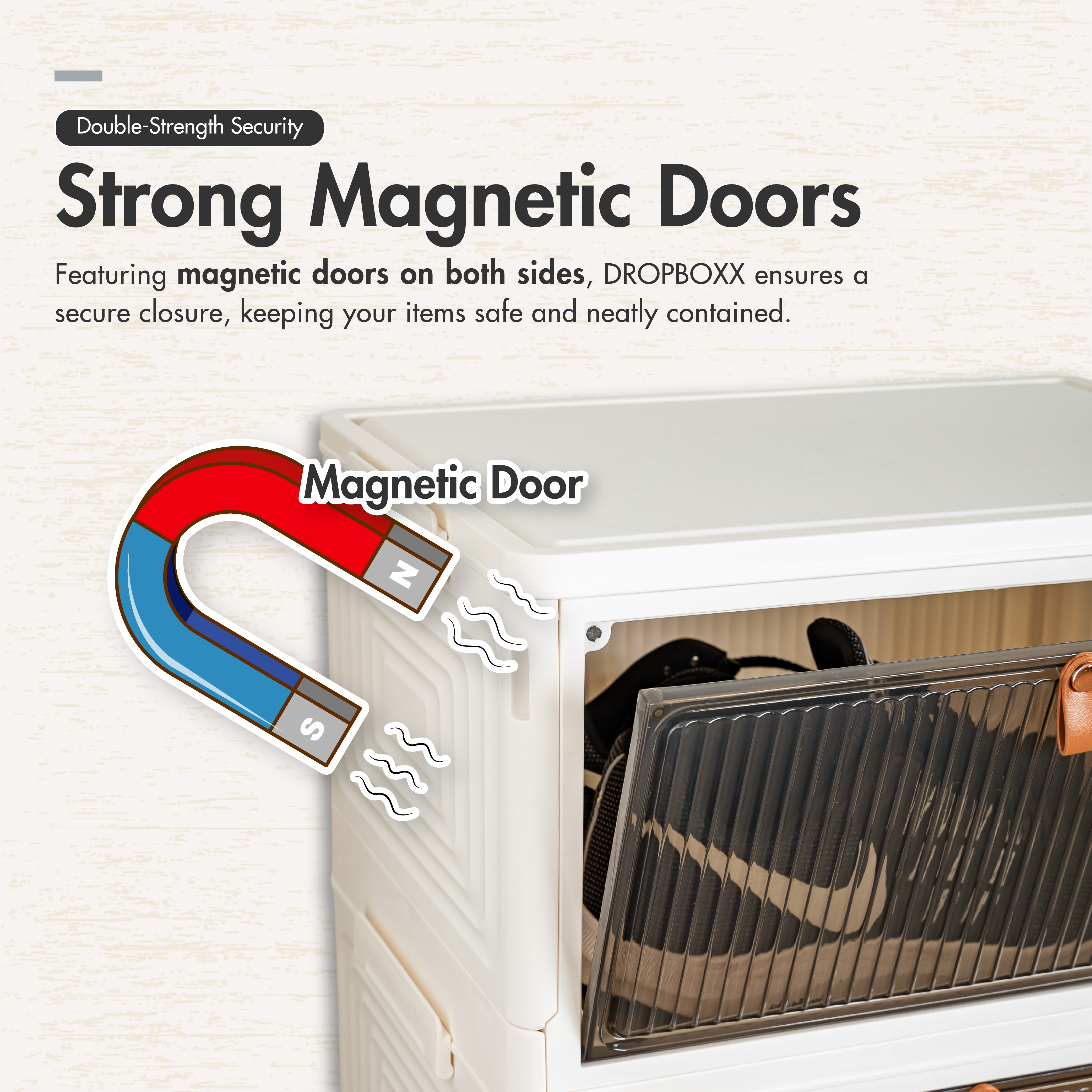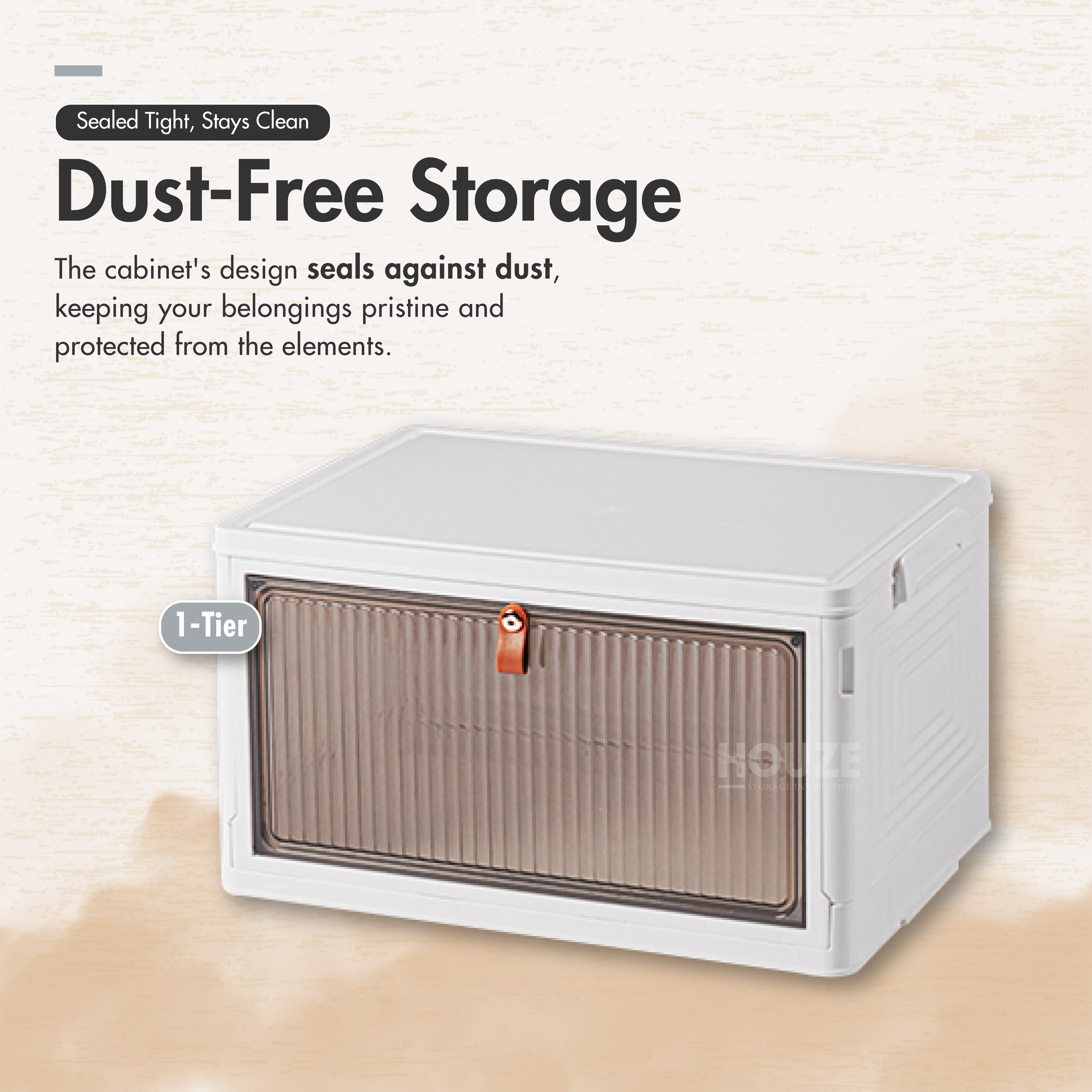 Discover the HOUZE DROPBOXX. your ideal shoe storage solution! Compact and foldable. this single or multi-tier cabinet is made from durable materials. keeping your shoes safe from dust and moisture. Its magnetic latch and semi-transparent door make it a breeze to use. Plus. its wheels make moving around easy. Perfect for any modern Singapore home. the SoleMate is stylish and practical!