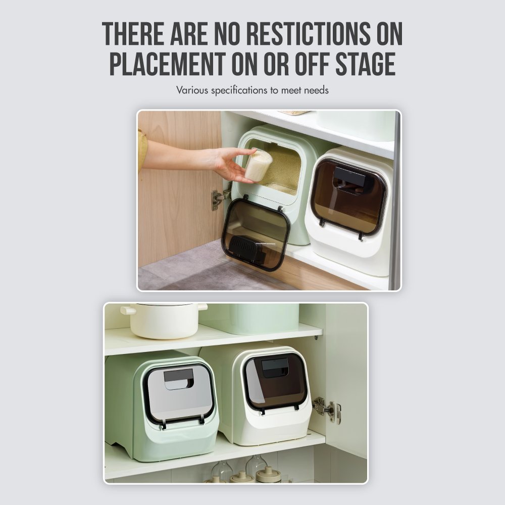 The KitchenMate rice container has an automatic backflow out and a tight seal function. making it astonishingly easy to use and store. Its versatile design lets you store more than just rice?€?you can stash away your pasta. cereal. or pet food.