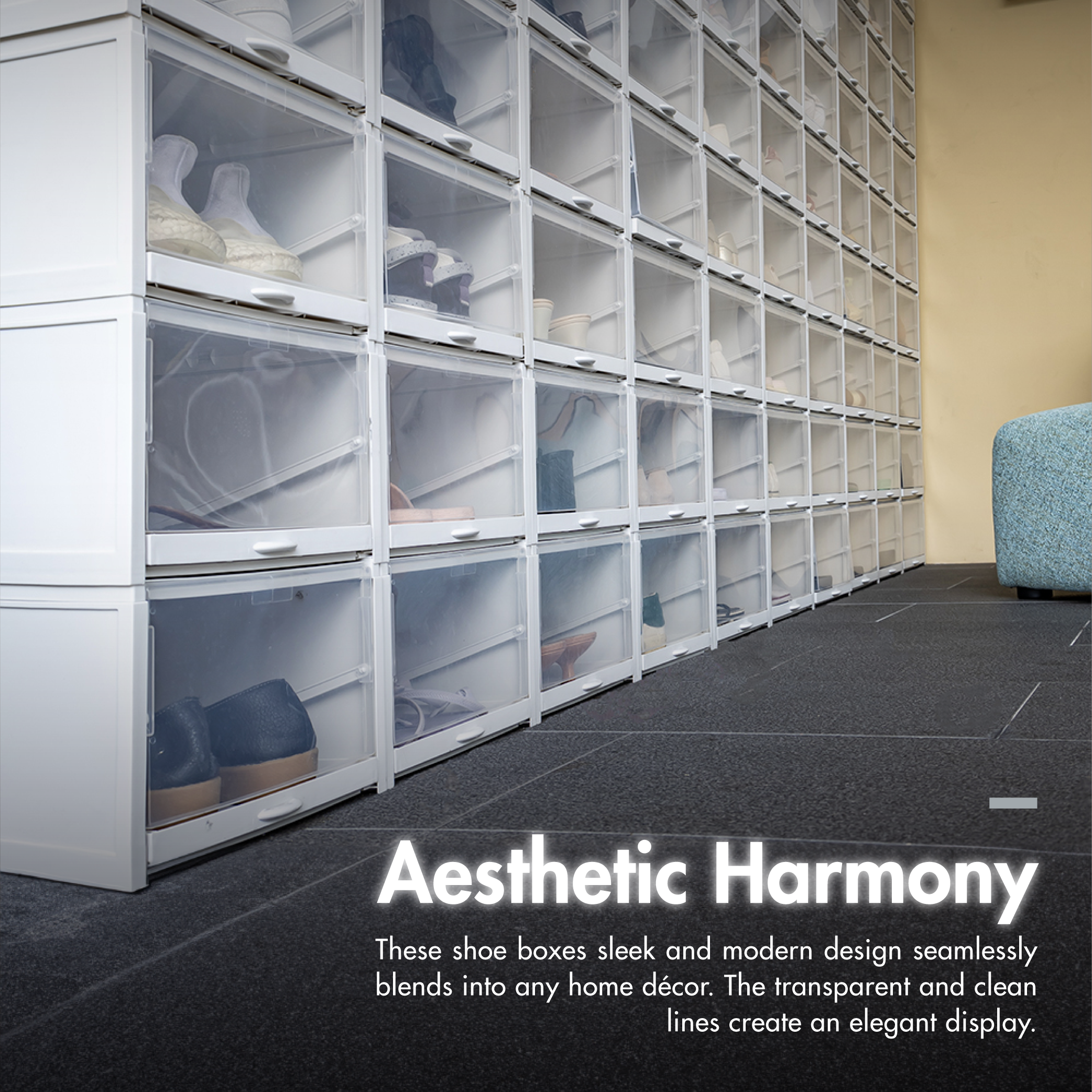 Build with transparent lid for easy visibility. access your shoes single handedly with the pull-out door function. Stable and stackable design allows you to store your shoes neatly even in confined space.