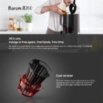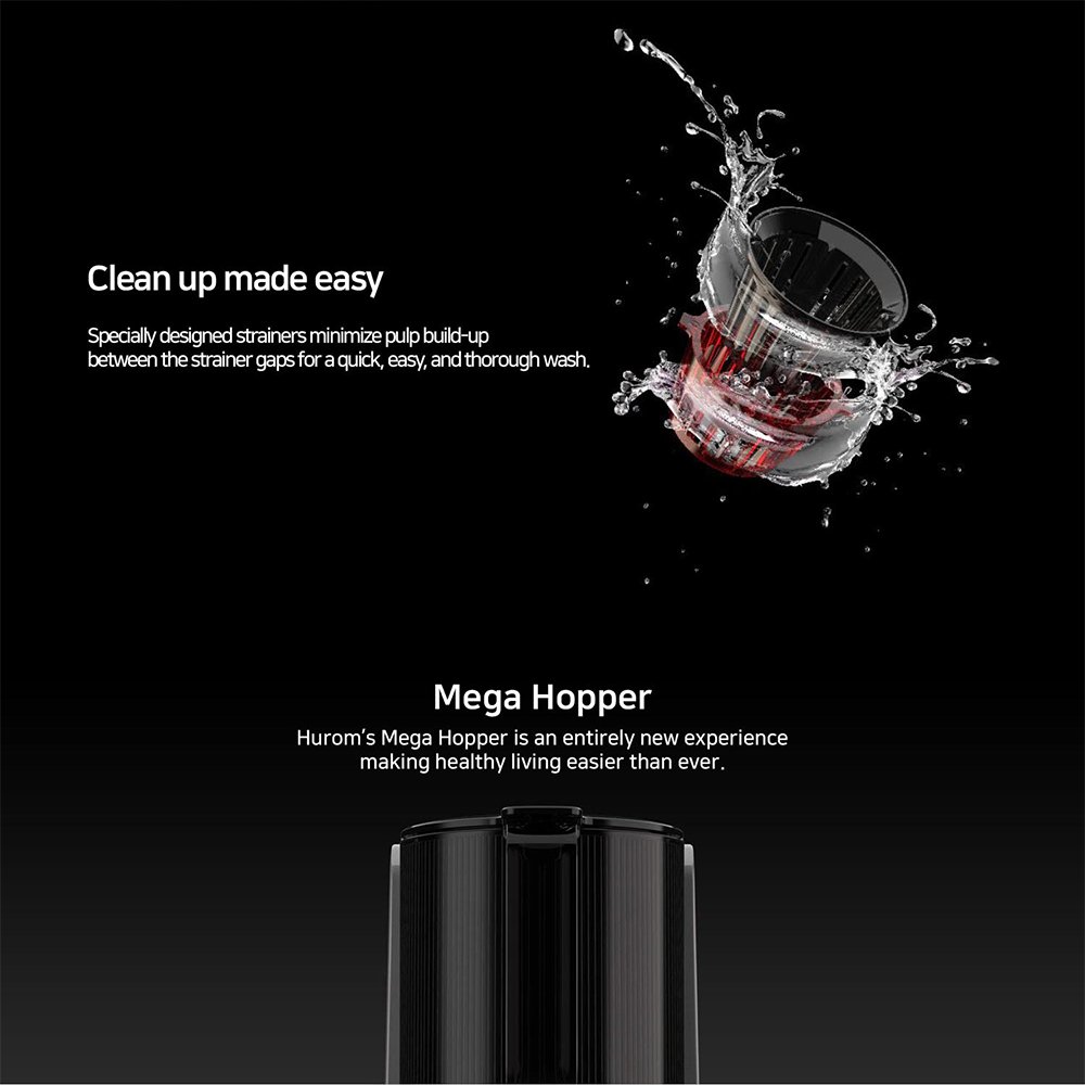 Strainer-Free Chamber: Traditional juicers require a strainer which collects minerals over time. requiring extensive scrubbing. The H400 utilizes a revolutionary mechanism that minimizes pulp – even without a strainer. The strainer-like function is practically embedded within the chamber and the two-part auger meshes together to strain out pulp-free juice – which means bare minimum cleaning for high-quality juice!