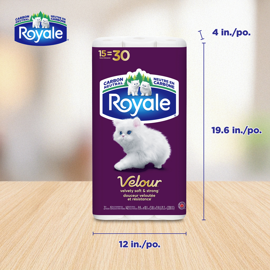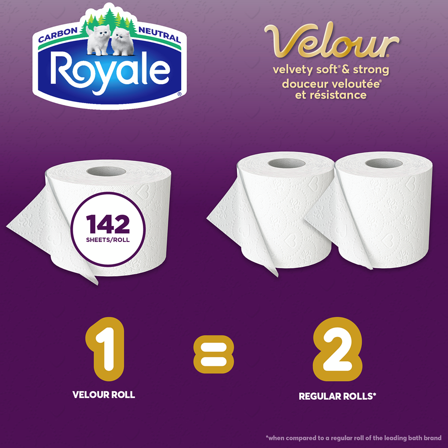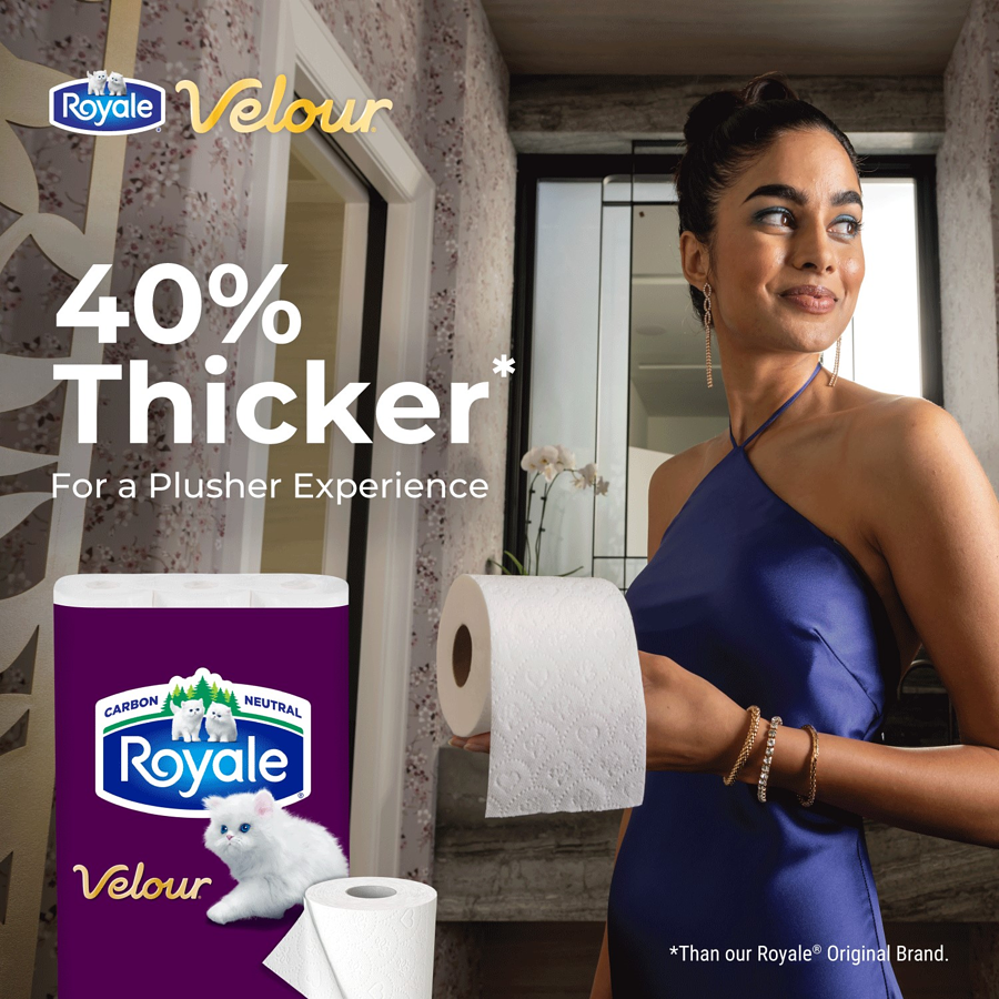 - Canadians deserve a luxurious bathroom experience. And that’s what you can expect from Royale Velour bathroom tissue. It’s 40% thicker* for a plusher experience (than our Royale Original Brand).