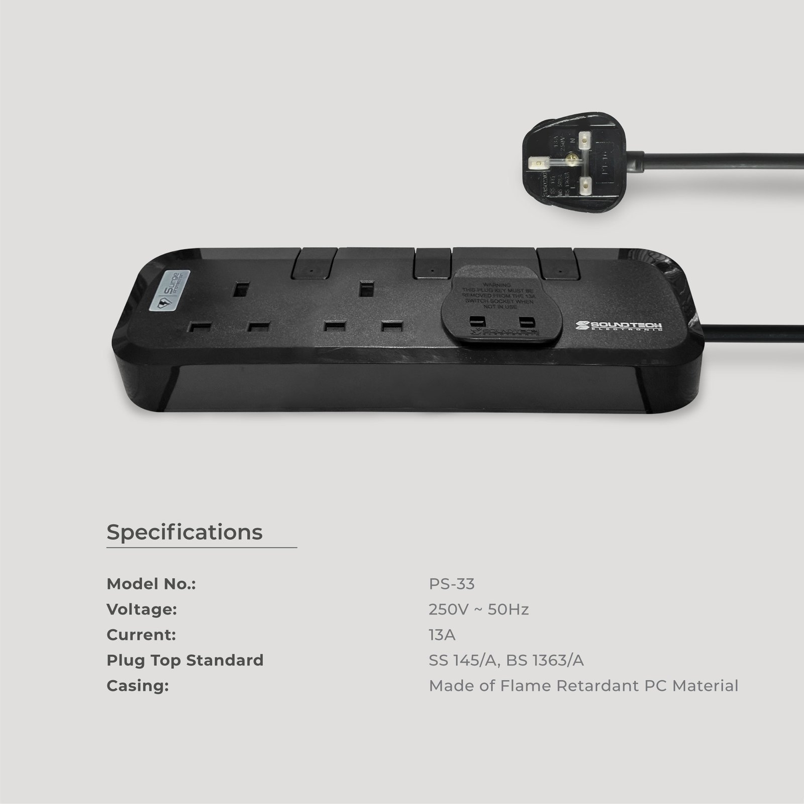 Total Max. Loading of 3 Sockets:Â 13A. 3250W