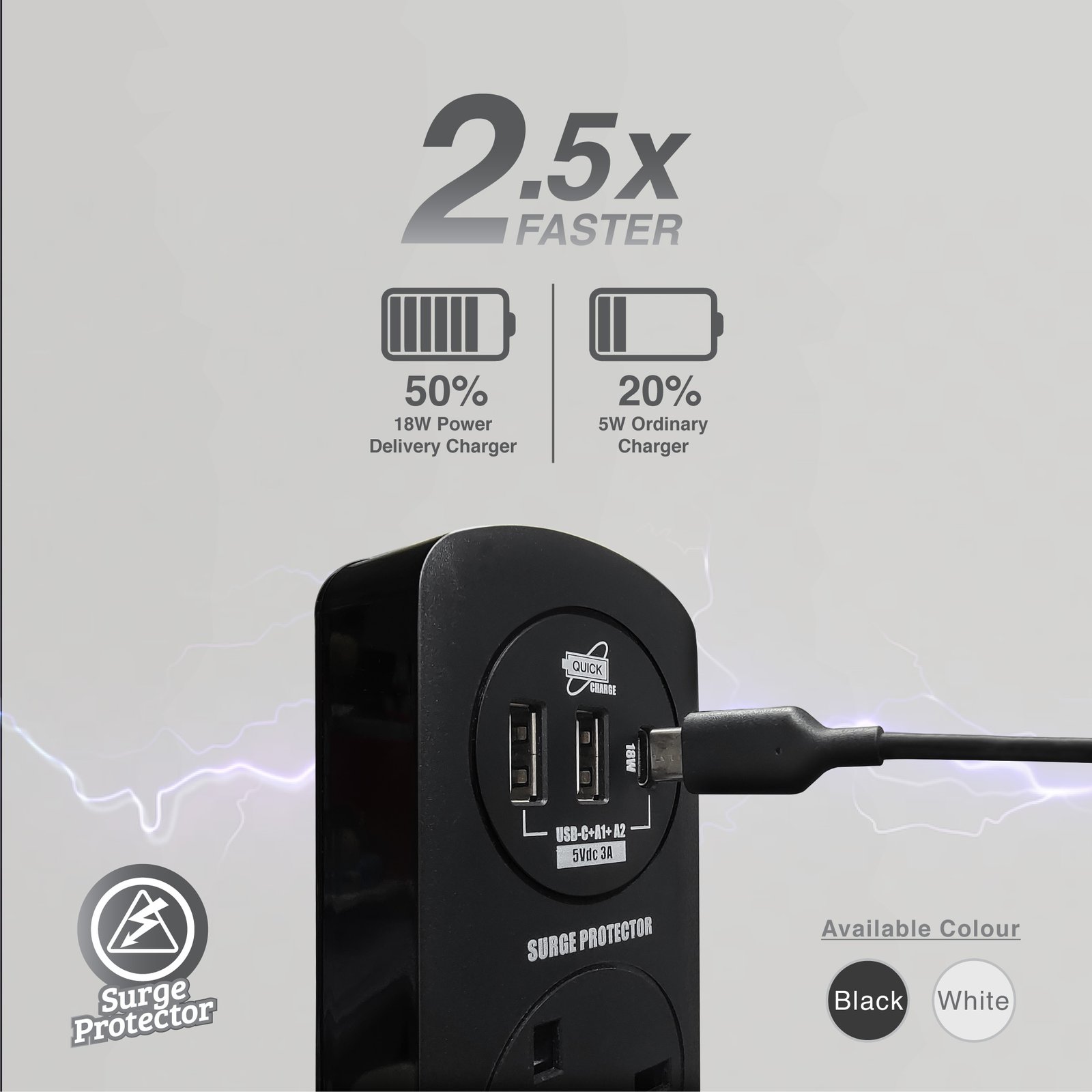 • USB-C PD 3.0 and 2 USB-A PORTS