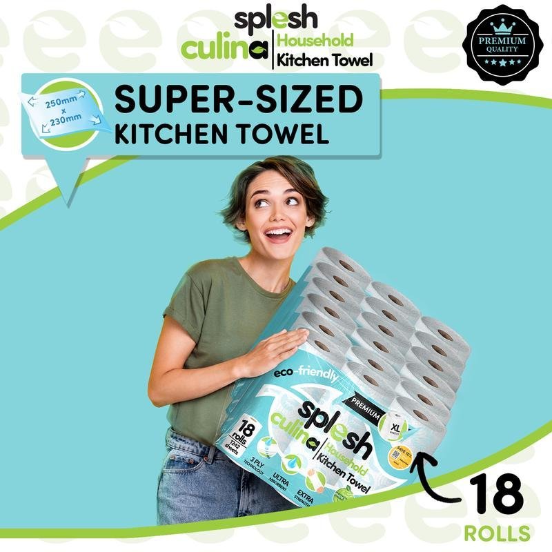 Splesh Culina Premium Kitchen Towel 3 Ply Ultra Absorbent XL Roll, 18 Rolls