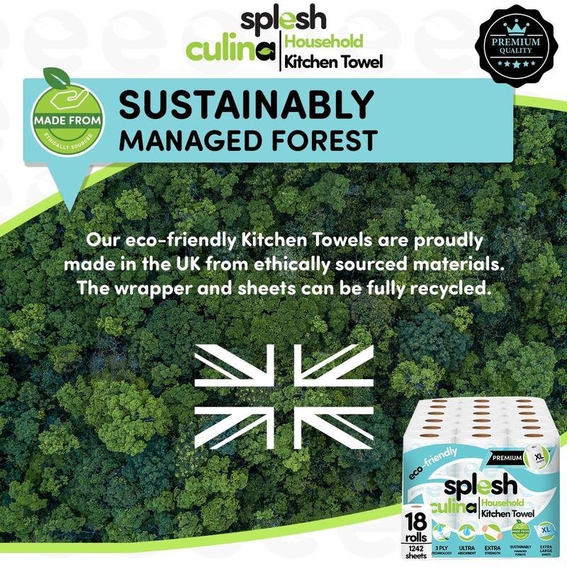 Box Contains: Splesh Culina XL 3-ply Kitchen Towels, 18 Rolls