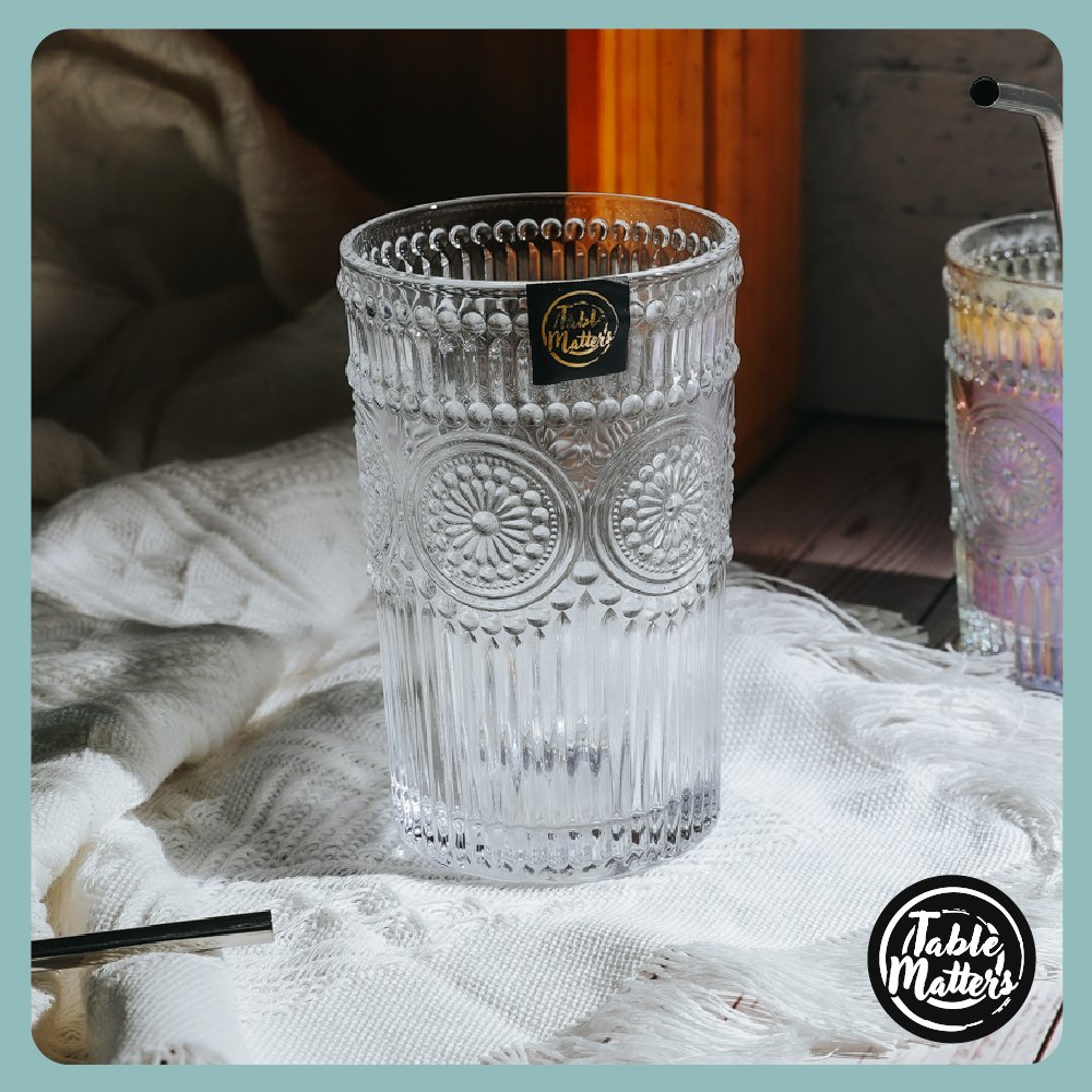 The TAIKYU Lace Drinking Glass is not merely a drinking vessel but a proclamation of style. a remarkable accessory that enhances the atmosphere of your dining moments. Each glass cradles your favourite beverages with an exquisite touch. whether a sparkling cocktail. an elegant wine. or a rejuvenating glass of water. making every occasion feel exceptional.